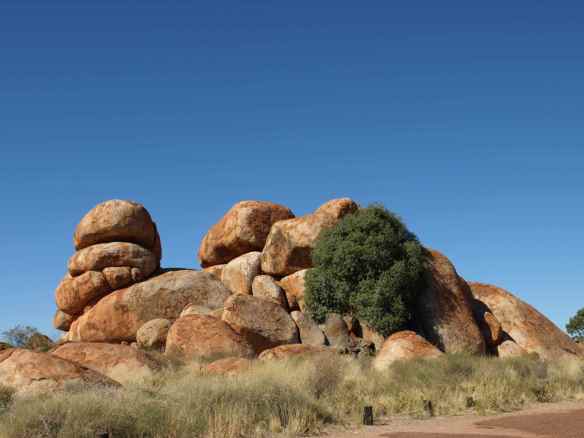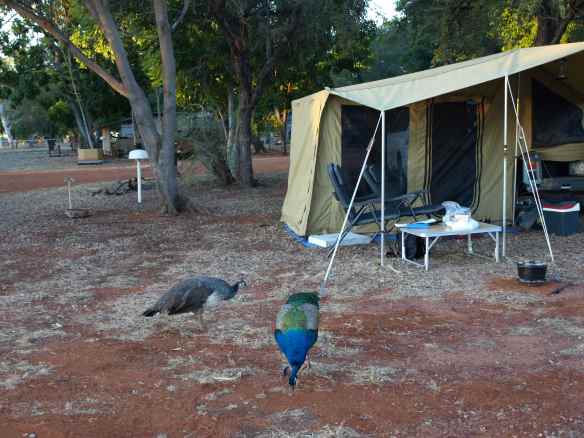 Thought that was the end of the blogs today……dropped the laptop and took a nice chunk out of it…still works though, so here’s today’s blog. Left camp early this morning and made our way to Tennant Creek via the Devil’s marbles. This place was amazing, we must have taken 100 pics. It is an extremely peaceful and spiritual place and really makes you feel very insignificant amongst all the natural beauty. It is very difficult to do this place justice in a few pics, all I can say is it should be on every Australian’s visit list. And yes…..the sky really is that blue. We called into Tennant Creek to stock up on supplies and are made our way to Elliot which is a camping area on the Stuart Highway on Aboriginal land about 240kms north of Tennant Creek. Its very quiet here, Rod and I are the only ones here, except for a few peacocks.
