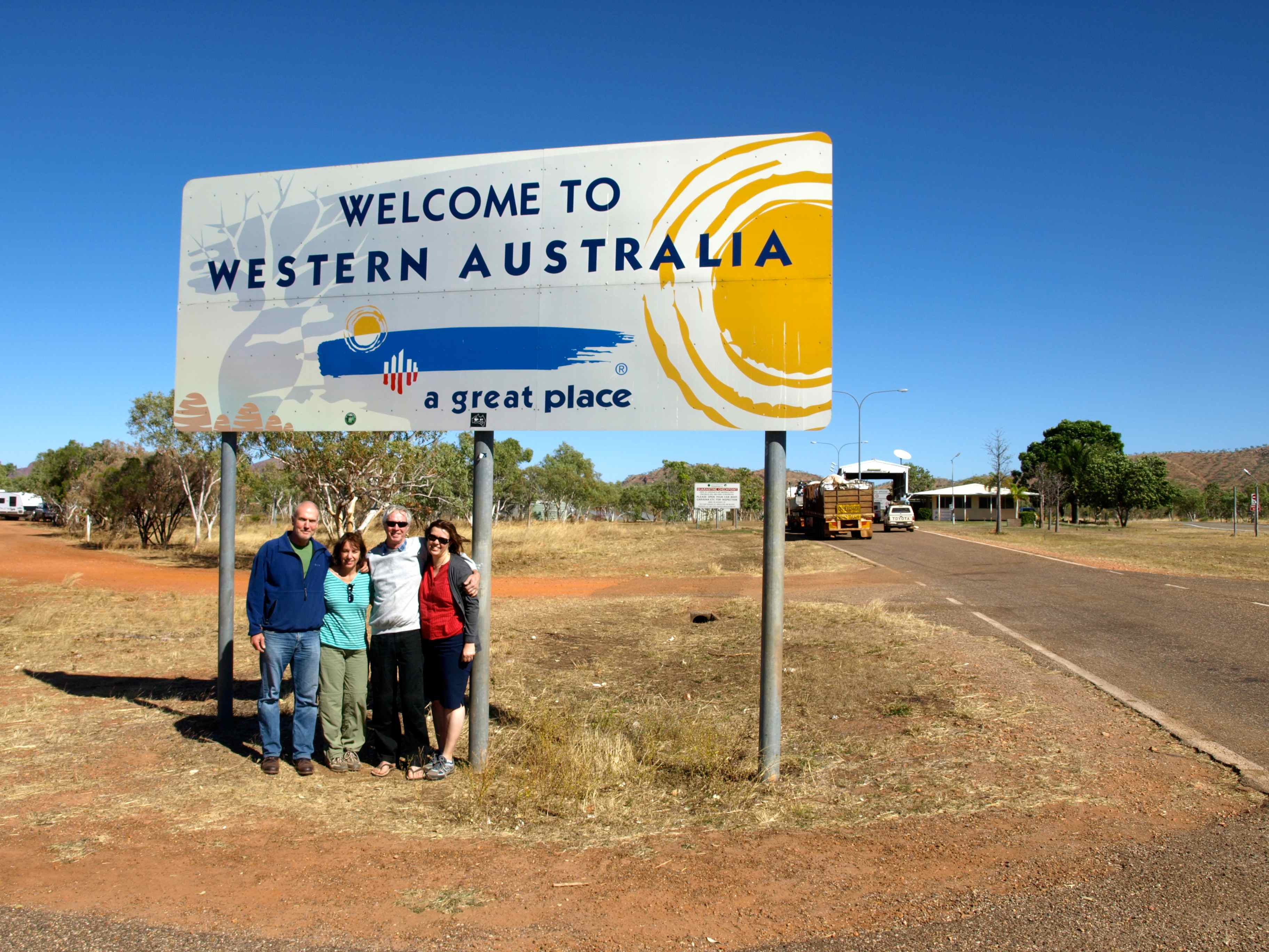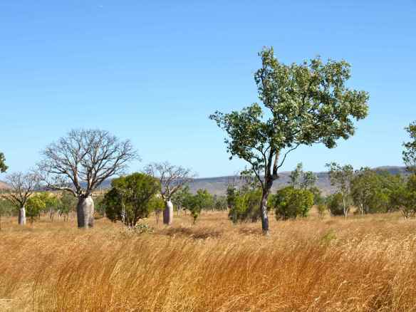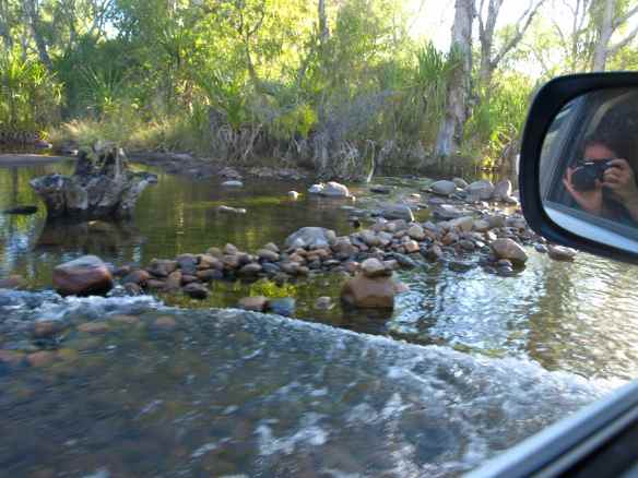 We crossed the border to WA today. At the quarantine station we handed over all our fruit and veges, (and unopened honey) and then made our way to Kununurra where we restocked our fruit and veges (and more honey) and headed off to Wyndham. We went up to the five rivers lookout where 5 rivers in the area flow out into the ocean. It certainly made for a grand view. We then made our way back down south to get on the infamous Gibb River Road. We had our first creek crossing, we survived, but I think there are plenty more in store that will test us out a bit more. We made our way to El Questro and set up camp, we will be here for 2 nights. The scenery along the Gibb River Road is just like what you see in all the photos of the Kimberly, beautiful – again we are astounded at the variety of landscapes we have gone through.