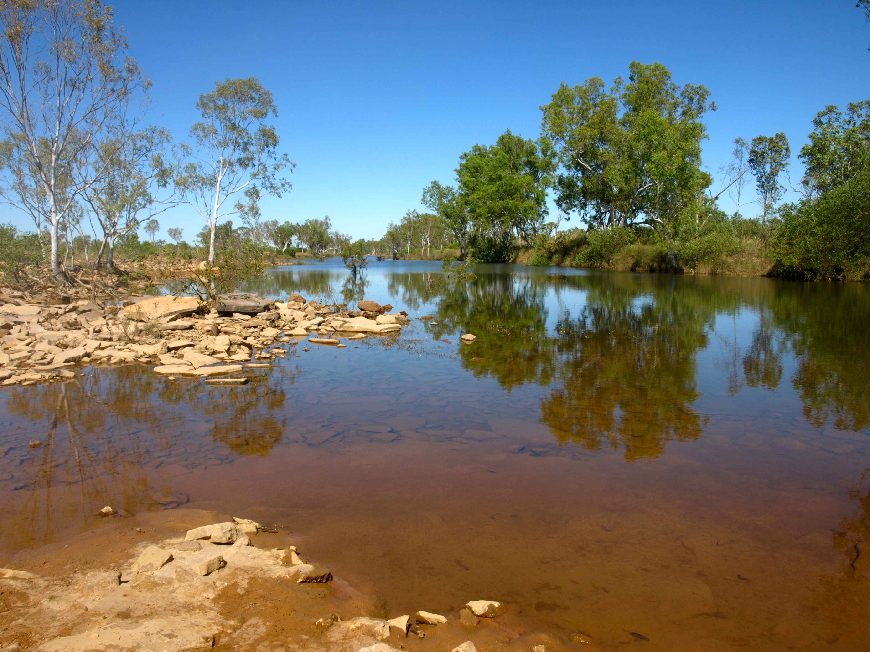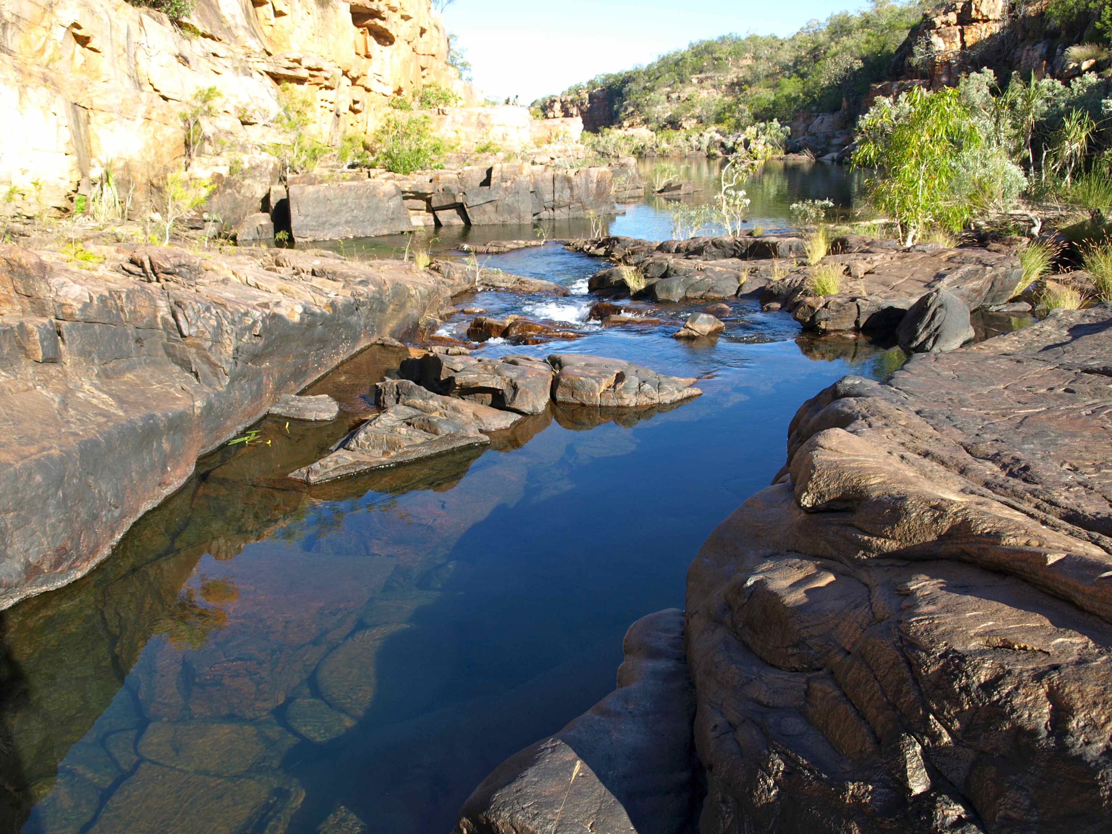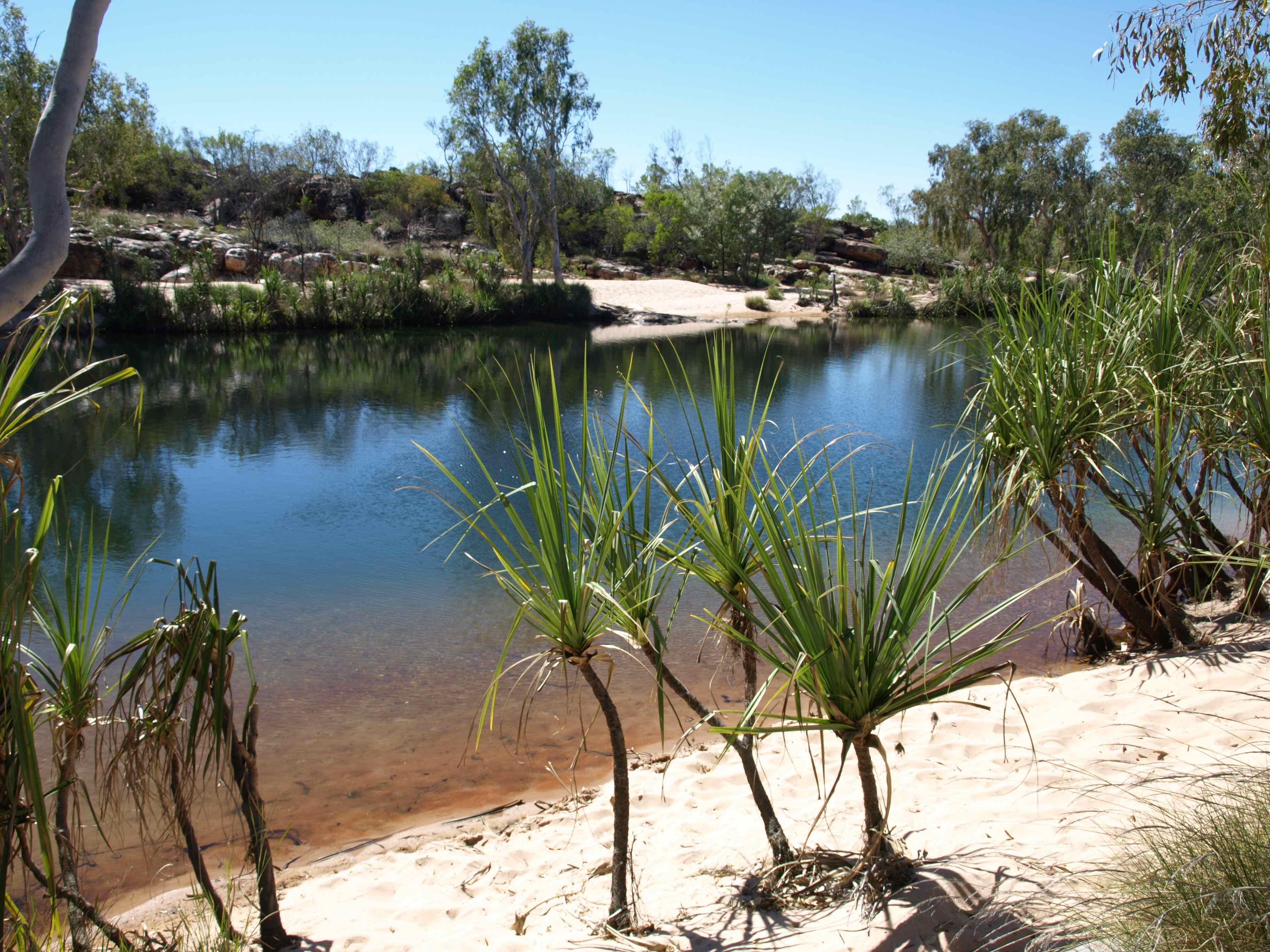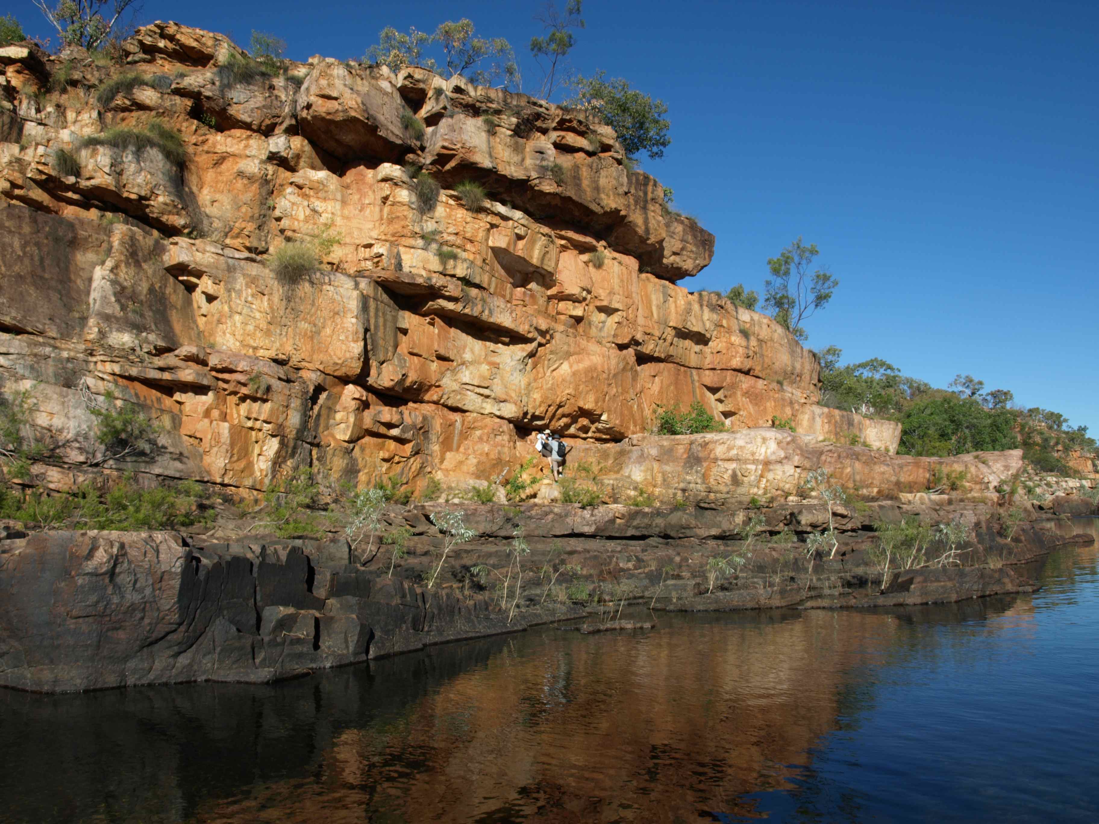 Woke up to a cold morning, and the sound of birds and the Manning River gurgling in the background. We repoked the fire, put on a coffee, made some breakfast and waited for the sun to come up. We still seem to be on Sydney time, having early mornings and early nights. We are sleeping so well, the pod is cosy and warm, which is just as well as the nights and early mornings have been cold with the days warming up to about 23 degrees, perfect weather for bushwalking and inspecting the beautiful gorges around the Kimberly. Today we are heading off to the Manning Gorge which was about a 1 hour walk from our campsite. We needed to cross the river to begin the walk, luckily we had Brian’s Barge to get us across the river, or else it would have been a cold swim.