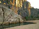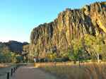 Today we crossed the track from our campsite and took a short walk to Windjana Gorge. This is the most spectacular place I have ever seen. We walked through the Savanna and then through a crevice in the rock to find ourselves in the most beautiful gorge. I will let the pictures below show you, but they do not do justice to the majestic beauty of Windjana Gorge. Later in the day we ventured into Tunnel Creek, which again was majestic, although different again. The tunnel was in total darkness and we needed headlamps to find our way. We waded through the cold clear water through the tunnel that snaked its way through the mountain range. Another amazing experience. Let us know what you think.