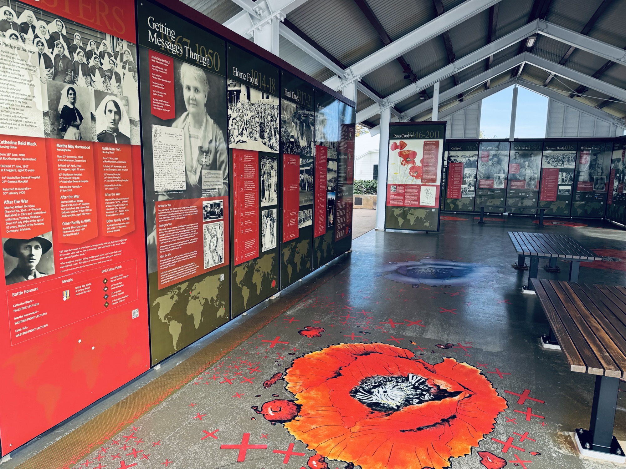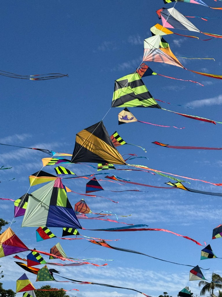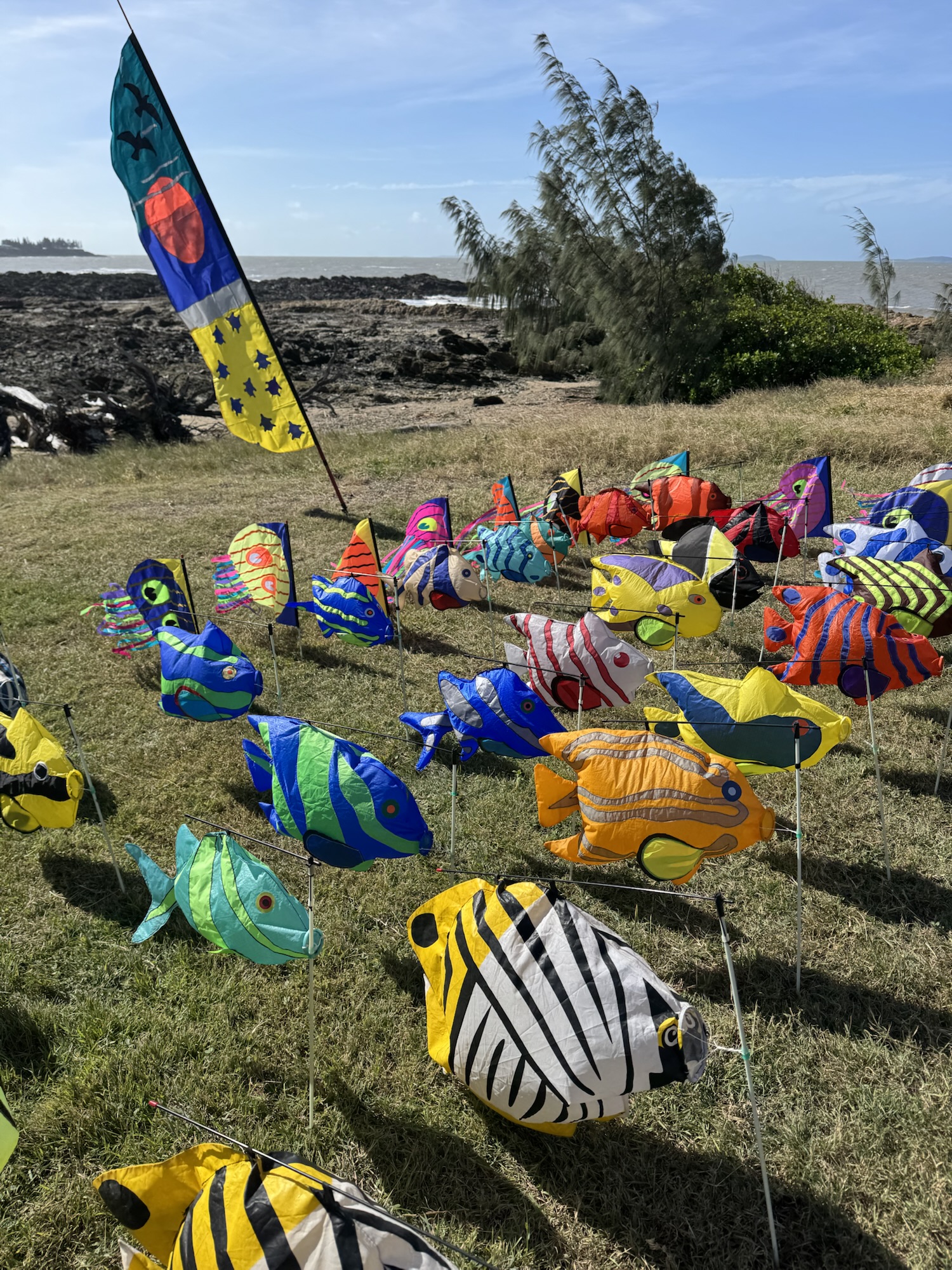 This little town really impressed, from the best stocked independently owned supermarket I’ve ever seen, where all the staff looked smart in their white shirts and black ties, to the community gallery which was hosting the 3rd International Art Textile exhibition from Fibre Arts Australia – which was right up my alley – so inspiring – from the Festival of the Wind, which saw the skies above Fisherman’s Beach festooned with colourful kites, to the beautifully curated Memorial Walk that pays respects to the ANZACS, not to mention the convenience of catching a local bus to Yeppoon which was 20kms away for $1 return! This little town certainly had lots to offer.