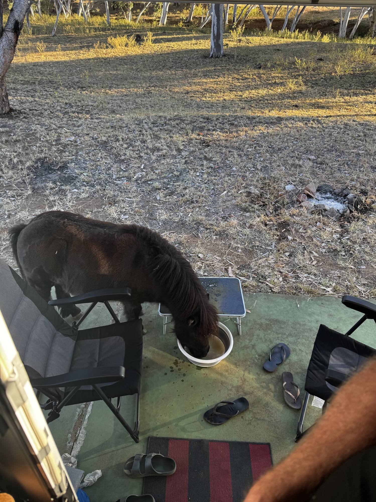 With the mine long closed in 1982 the structures of the township have all but been removed. You can still see remnants of the different buildings. It was a great place to camp, lots of room to spread out. We had a bike ride around the town and in the morning we had a couple of visitors, a Shetland Pony who decided to have a drink under our awning and a suckling calf as well as lots of different birdlife. It was a great campground, with so much history, such an interesting place.