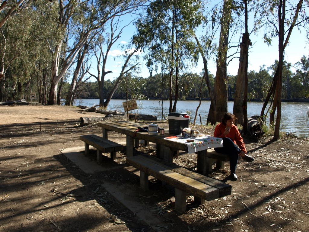 - Day 2 – Outback NSWYesterday our travels took us through NSW, Vic and SA (3 states in one day). We had a picnic lunch on the banks of the Murray at Robinvale (Vic) then we travelled through Mildura and set up camp at Riverbend Caravan Park, Renmark, on the banks of the Murray –… Read more: Day 2 – Outback NSW